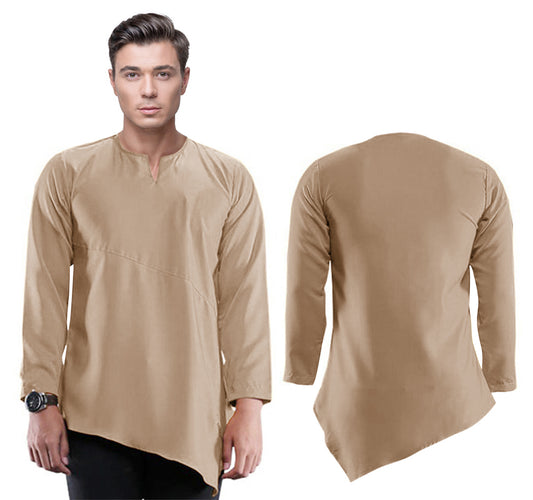 Baju Koko Kurta Pria Kerah V Cut Style Polos Tangan Panjang