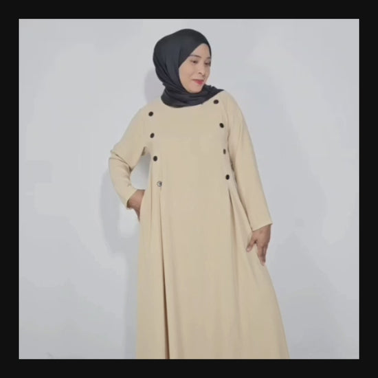 Gamis Abaya Panjang Wanita Muslim Kancing 8 Tangan Panjang dan LIpatan Pinggir