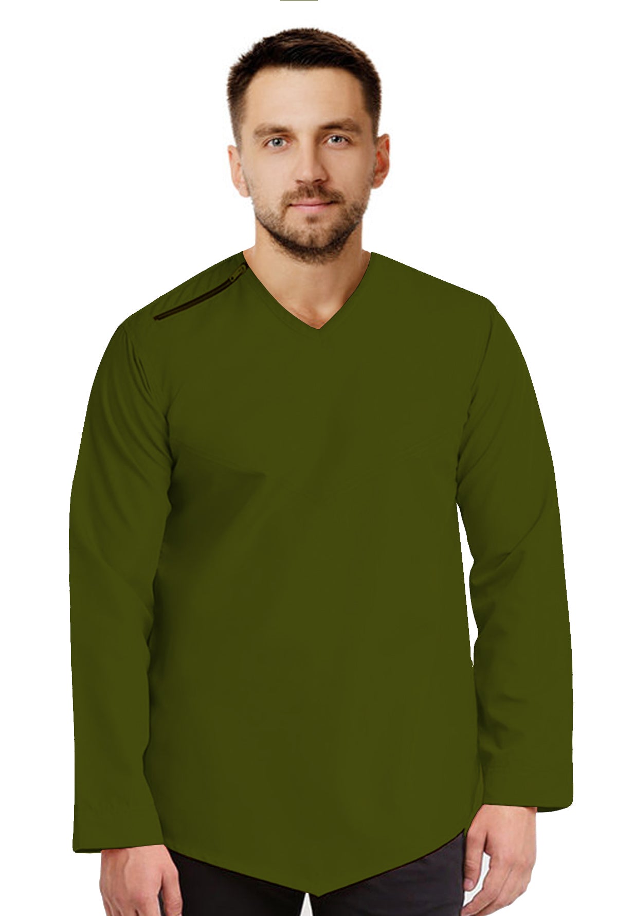 Kurta Muslim Baju Koko Pria Sleting Bahu Motif Polos Tangan Panjang